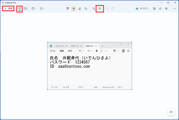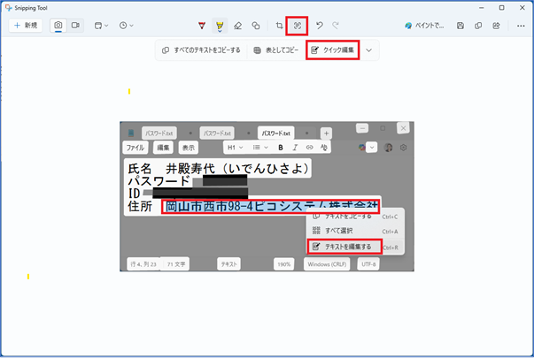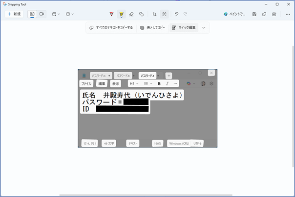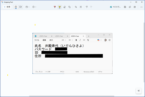そこで、今回はSnipping Tool で、簡易版からアプリ版を起動してフル機能を利用して機密情報へ自動で網掛けしたり、手動で網掛けする方法を学習します。