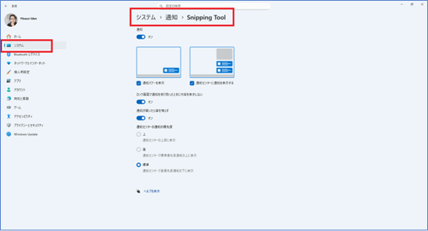 1.1 [Win]-[設定]-[システム]-[通知]-[Snipping Tool]