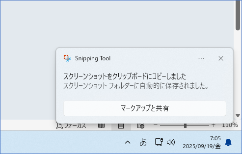これで通知バナーまたは、通知センターを選択することでSnipping Tool アプリへアクセスできます。