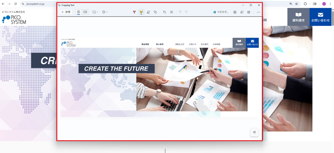 6.スクリーンショットがSnipping Toolに取り込まれたことを確認