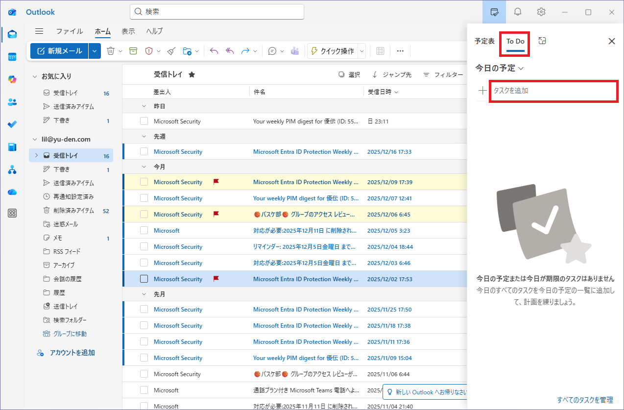 1.[今日の予定]ウィンドウで任意のToDoタブをクリック2.[タスクを追加]