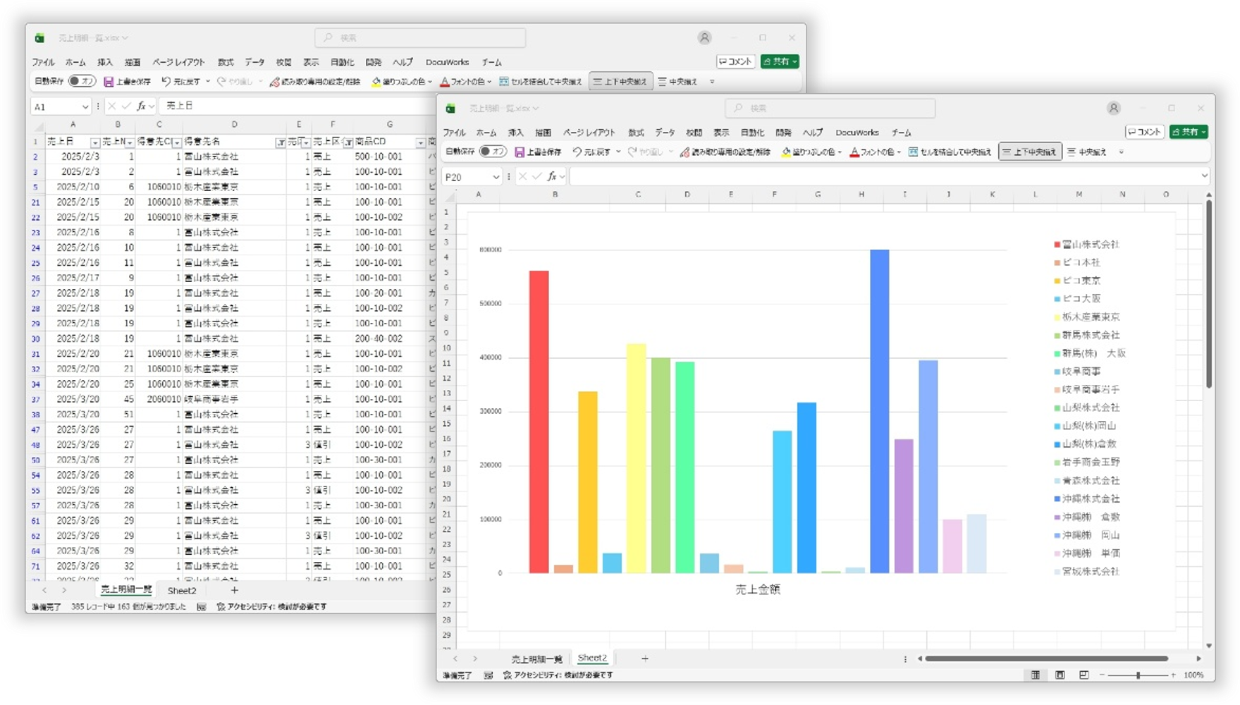 各種実績関係の帳票類は画面での確認、印刷、CSV出力をサポート。Excel等への連携を使って資料やグラフも手軽に作成。