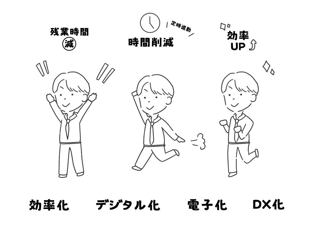 ペーパーレス化による時間削減の効果として、職員が定時内で帰れることが増えたという声があります。
